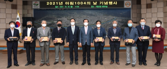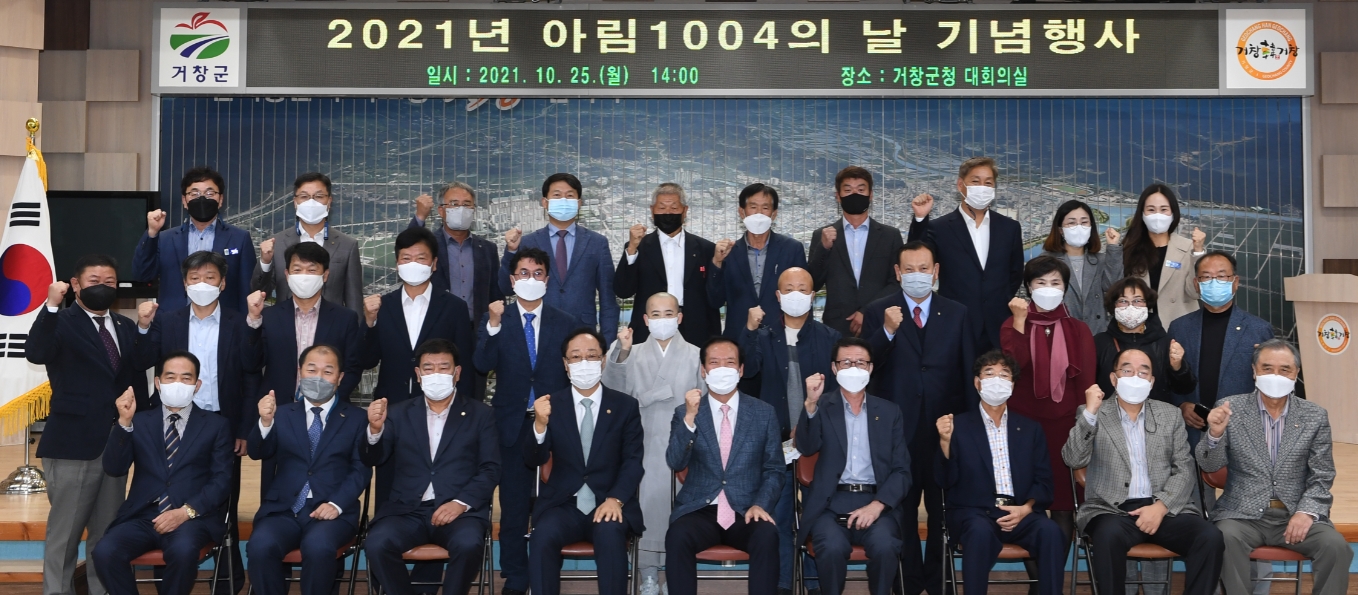 거창군은 25일 군청 대회의실에서 구인모 군수를 비롯한 김종두 군의장, 강철우 및 김일수 도의원, 아림1004운동본부 최순탁 본부장, 운영위원, 수상자 등 45여 명이 참석한 가운데 ‘2021년 아림1004의 날 기념식’을 가졌다.