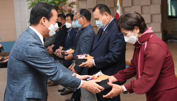이어, 고인이 되신 어머님이 유언을 실천하고자 아림1004운동에 참여했다는 형남태 등 8남매와 형제가 뜻을 같이해 나눔에 참여하고 있는 ㈜유성산업 이성구, ㈜도담 이성명 형제, 코로나19로 인해 모두가 힘들었던 지난해에 고향을 위해 2,000만 원의 큰 금액을 기탁한 후원자들에게도 감사패를 수여했다.
