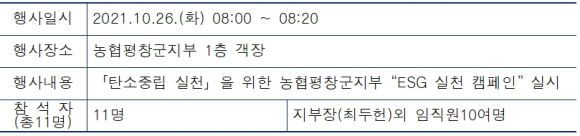 「탄소중립 실천을 위한」 제목 : 농협평창군지부“ESG 실천 캠페인”실시정민권 기자 / |
