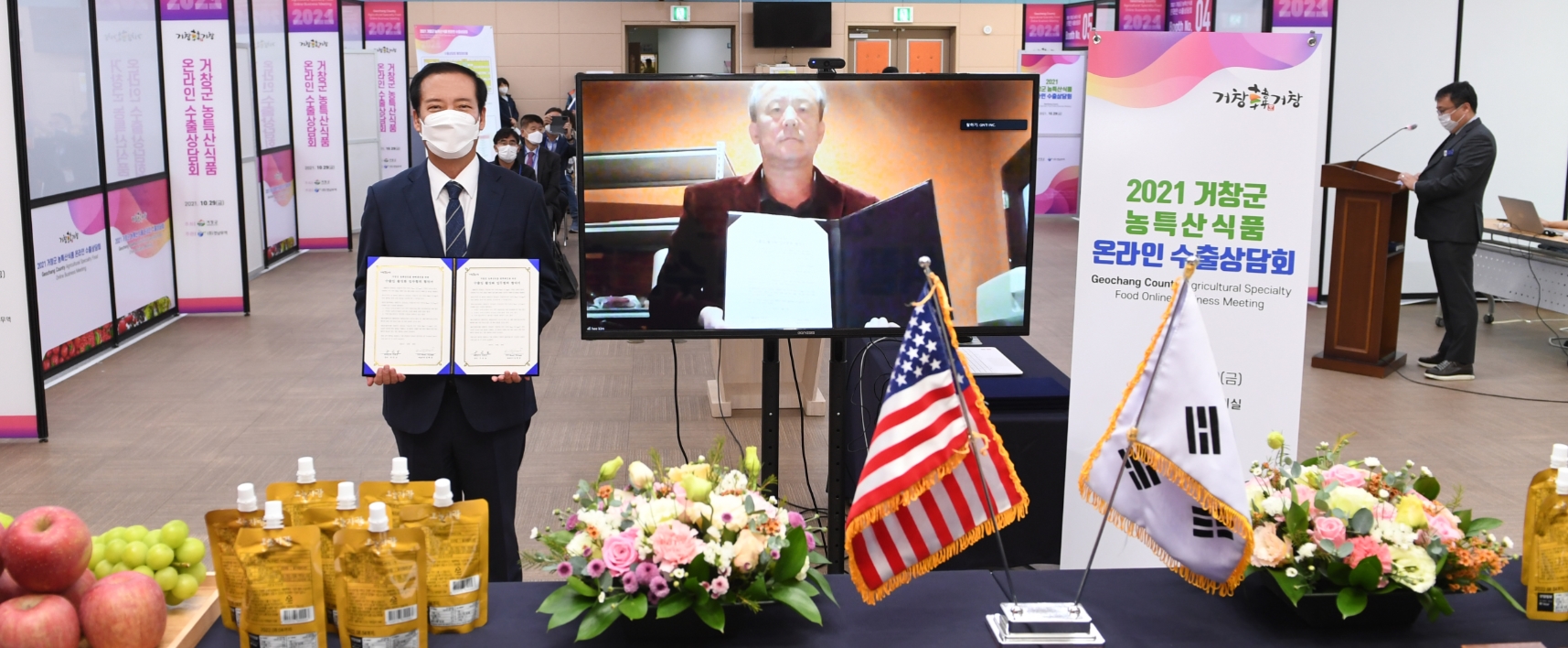 또한, 군은 10월 15일부터 미국 시카고에서 ‘거창 농특산식품 안테나숍’을 운영 중인 Woori Village(우리빌리지)와 수출입 활성화 업무협력 협약을 체결했으며, 이번 업무협약을 통해 관내 수출 유망 품목 발굴 및 수출 활성화를 지원하기 위해 지속적인 연계 지원방안을 모색할 계획이다.