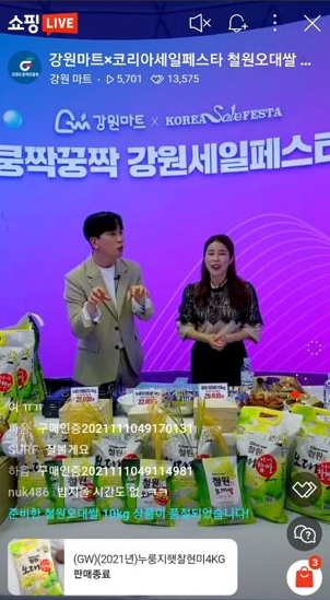 해당 라이브커머스에서는 철원오대쌀10kg을 45% 할인된 가격에, 누릉지 햇찰현미4kg와 햇찹쌀4kg을 각각 15% 할인된 가격에 무료배송이라는 파격적 혜택으로 완판 행진을 이어갔다.