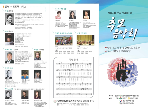 광복회 경남북부연합지회, 순국선열 추모음악회 개최국권회복을 위해 헌신하신 순국선열의 독립정신과 희생정신을 기억하며한용택 기자 / |