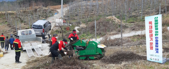 거창군, 산불예방을 위한 농부산물 파쇄 기간 집중 운영산림인접지 인화물질 사전 제거로 산불 예방한용택 기자 / |