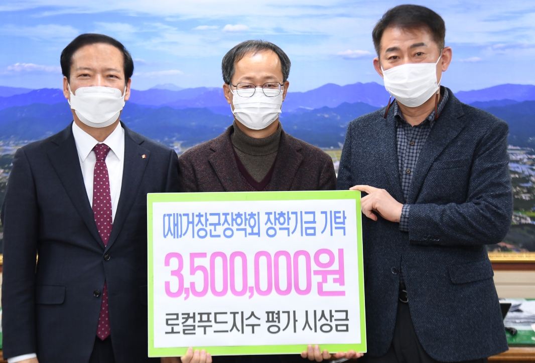 거창축산업협동조합&농업기술센터 장학금 350만 원 기탁2021 로컬푸드지수 거버넌스 부분 특별상 시상금 기탁한용택 기자 / |