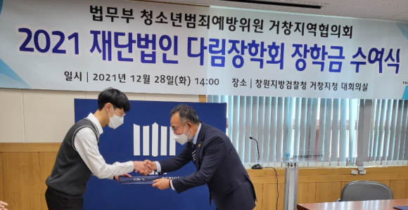 2021. 재단법인 다림장학회 거창지청과 함께 장학금 수여식 진행한용택 기자 / |