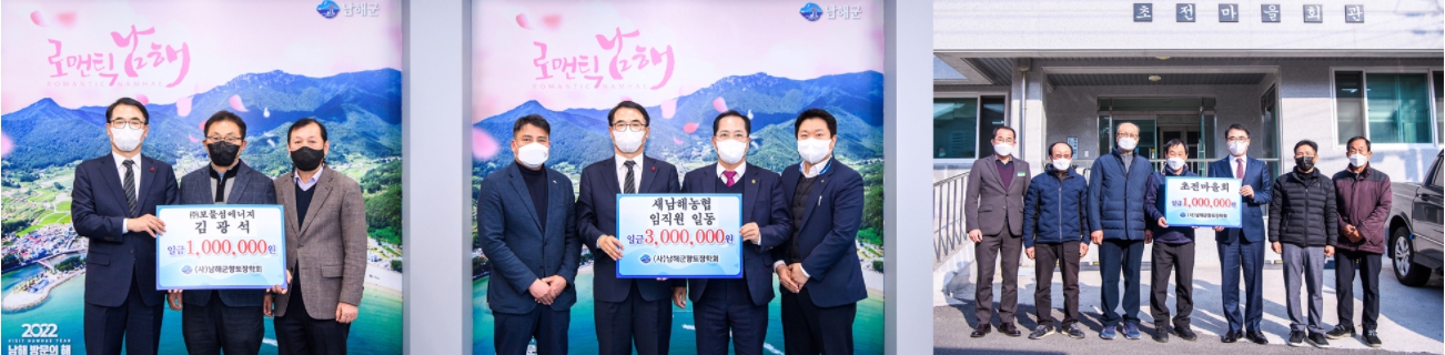 새해 첫 나눔으로 호랑이 기운을 후학에게…장학금 기탁러시새남해 농협 임직원 일동 300만원,㈜보물섬에너지 대표 김광석 100만원, 미조 초전마을회 100만원 남해군향토장학금 기탁 정민권 기자 / |