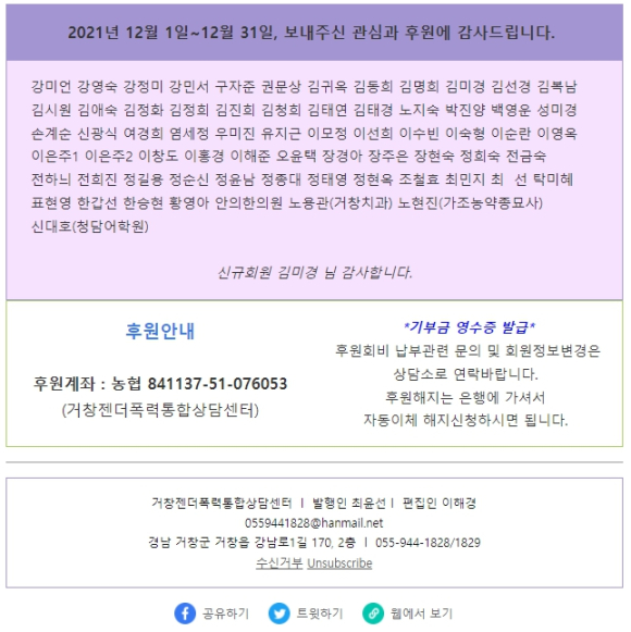 거창성가족상담소 12월 소식지한용택 기자 /