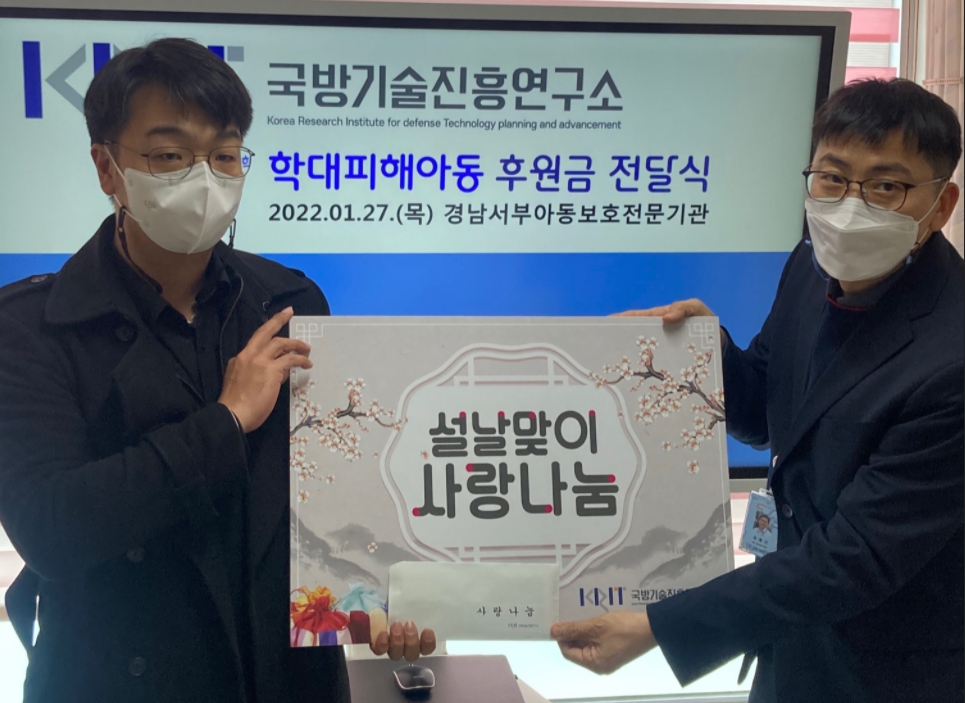 ‘국방기술진흥연구소(KRIT)’임직원 후원금 전달정유근 기자 /