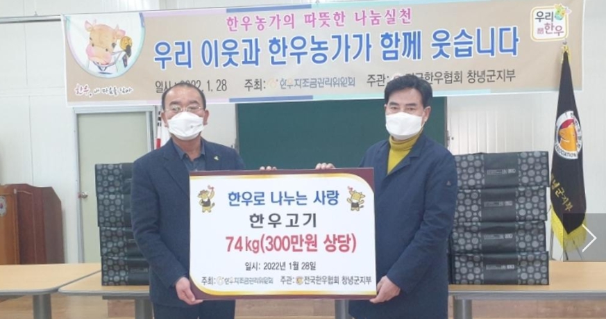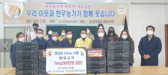 (사)전국한우협회 창녕군지부 한우고기 나눔 행사 개최= 군내 장애인복지시설 등 11개소에 전달 =정유근 기자 / |