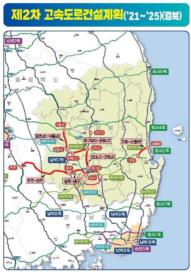 경상북도는 28일 국토교통부가‘제2차 고속도로건설 5개년 계획(2021~2025)’을 확정해 발표했다고 밝혔다.