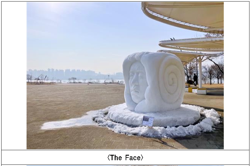 | 작품은 1월 26일(수)~27일(목) 현장에서 직접 제작되어 자연 해빙 시까지 관람할 수 있다. 전시 중인 눈 조각품은 폭과 높이가 각각 2m 규모로, 여의도한강공원에 3점, 뚝섬한강공원에 3점, 반포한강공원에 4점이 설치됐다.