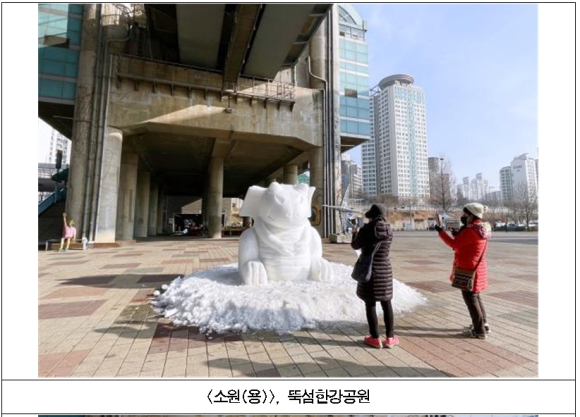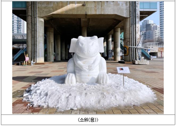 | 이철희 한강사업본부 운영부장은 “이번 눈조각전이 지치고 힘든 일상에 따뜻한 휴식과 위로가 될 수 있기를 바란다.”라며, “우리 곁에서 일상을 함께하는 한강공원이 가까이에서 문화·예술을 향유하는 대형 야외 미술관이 될 수 있도록 지속 노력하겠다.”라고 말했다.