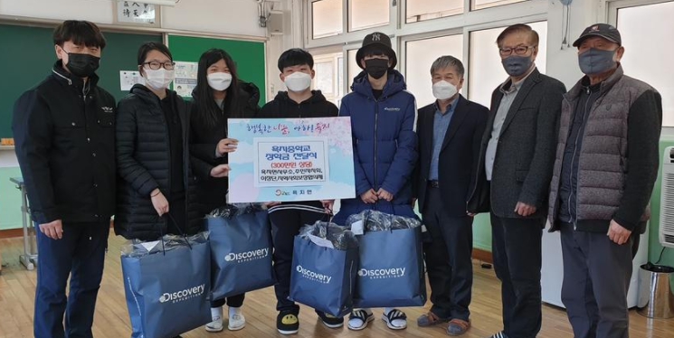 욕지중학교, 원량초등학교 졸업생 격려 장학금 지원-욕지중학교, 원량초등학교 졸업생 11명 4,500,000원 장학금·패딩11벌 지원-정유근 기자 / |