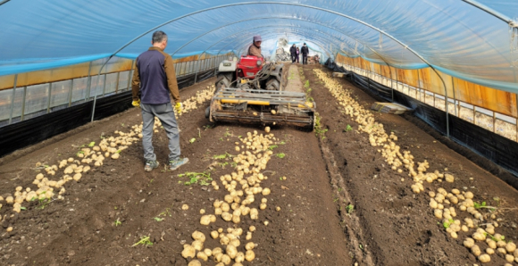| 이번에 첫 출하된 하우스감자는 남원시 금지면 황치연농가의 시설하우스 8개동(5,280㎡)에서 재배된 “수미”품종으로 서울 가락동 한국청과에 720Box (20kg/1box) 약 14톤을 우선 출하하였으며, 4월까지 수확·출하하게 된다.