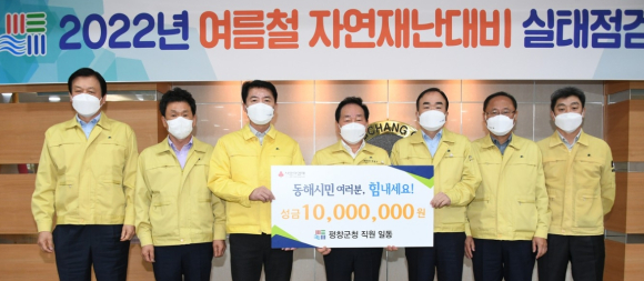 평창군청 직원들, 동해시 산불 피해 특별모금 성금 기탁정민권 기자 / |