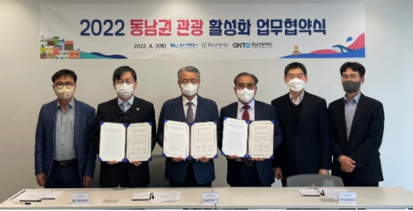 경부울 관광시대, 함께 열어 나가자 경남관광재단-부산관광공사-울산관광재단 업무협약(mou) 체결- 7일, 3개 시도 경남관광재단-부산관광공사-울산관광재단 업무협약 체결- 경부울 지역 관광·mice 산업 활성화 및 마케팅 사업 추진키로 정유근 기자 / |