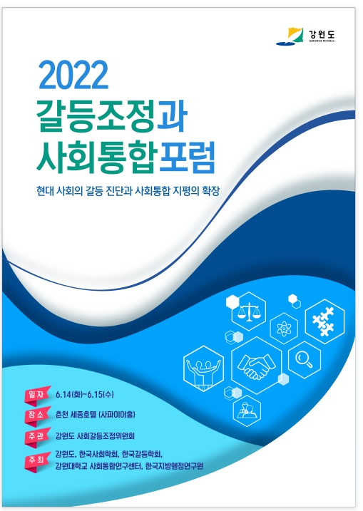 단기4355년 강원도는 6. 14.(화)부터 15일까지 2일간 춘천 세종호텔에서 “현대사회의 갈등진단과 사회통합 지평의 확장” 이라는 주제로 「2022 갈등조정과 사회통합 포럼」을 개최한다.