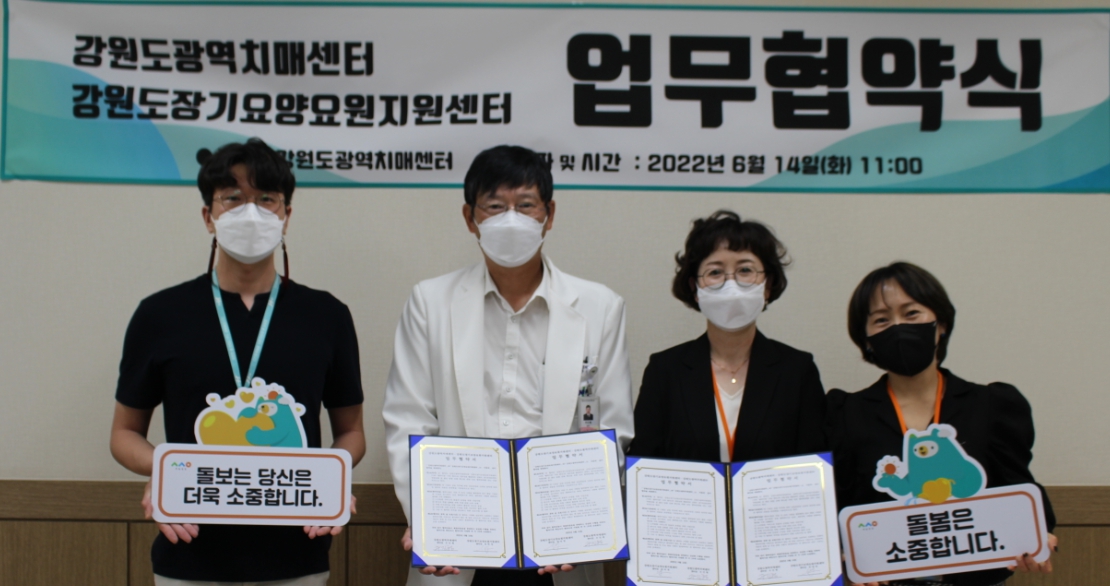 강원도 장기요양요원지원센터는 2022년 6월 14일(화) 강원도광역치매 센터와 업무협약(MOU)를 체결하였다.