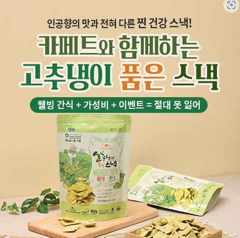 강원도 소셜마케팅「카페트를 깔아드립니다」- 2차 홍보지원 : 브니엘월드 ⇒「고추냉이 품은 스낵」건강한 맛에면역력은 덤이죠~!! 정유근 기자 / |