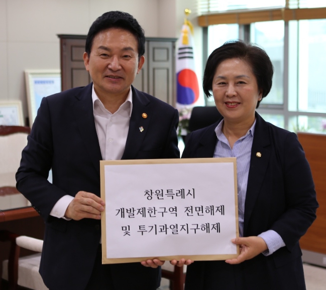 김영선 투기과열지구, 개발제한구역 해제 요청… 원희룡 국토부장관 만나창원시 전체면적의 33.3% 개발제한구역인구감소 등으로 지정 목적 상실된 상태 정유근 기자 / |