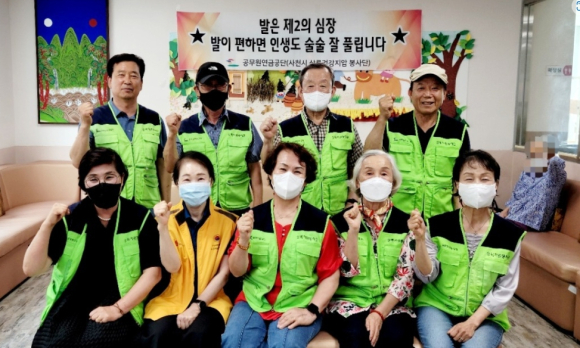 공무원연금공단(이사장 황서종, 이하 ‘공단’) 부산지부 소속 사천상록건강지압봉사단은 사회적 거리두기 해제에 따라 사천시에서 운영하는 노인주간보호센터인 ‘사랑원’에서 건강지압봉사활동을 24일 재개했다.