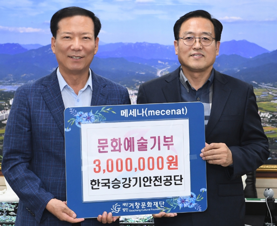 (재)거창문화재단(이사장 구인모 거창군수)은 27일 한국승강기안전공단(이사장 이용표)이 거창군 문화예술 활성화를 위해 메세나 후원금 300만원을 기부했다고 전했다.