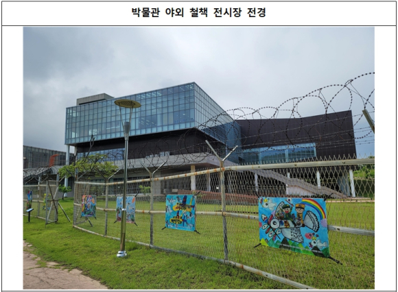 | 수상작품은 DMZ박물관 야외전시장에 있는 실제 비무장지대에서 남방한계선으로 쓰였던 오래된 철책에 걸개그림 형태로 제작되어 내년 7월까지 전시된다.