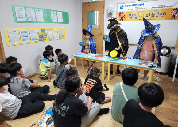 거창군 청소년 ‘힐링 마술공연’ 지역주민과 소통청소년수련활동 인증프로그램 참가 청소년들의 재능기부꼬마 마술사들의 미니 마술쇼! 김도형 기자 / |