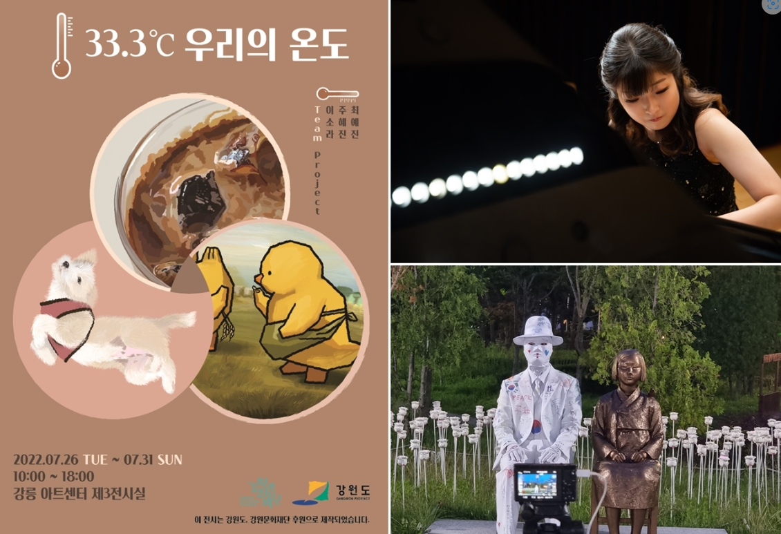 시각분야의 최예진은 7월 26일부터 31일까지 강릉아트센터 제3전시실에서 ‘33.3 우리의 온도’라는 주제로 세 명의 친구들과 함께 만든 세 가지 이야기를 풀어간다. 특히 최예진은 삶의 가장 작은 친구이지만 큰 존재로 다가오는 반려동물의 이야기를 통해 위로와 감동을 전한다. 이어서 8월 29일부터 9월 2일까지 강릉 뮤지엄 홀리데이에서는 ‘나의 가장 작은 친구’라는 주제로 작품을 소품화 한 소품 전시를 통해 추억과 이야기를 공유할 예정이다.