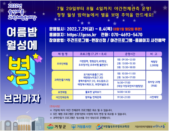 거창월성우주창의과학관, 여름 과학체험 한마당 운영여름밤 월성에 별 보러 가자김도형 기자 / |