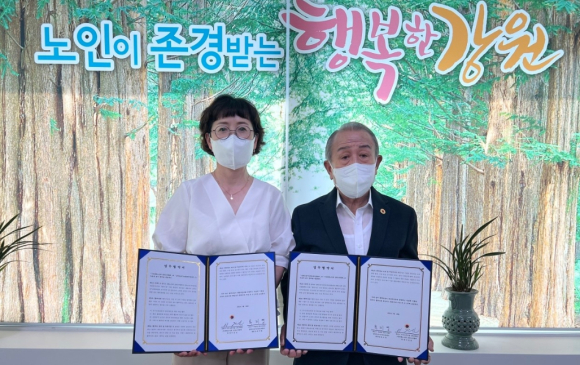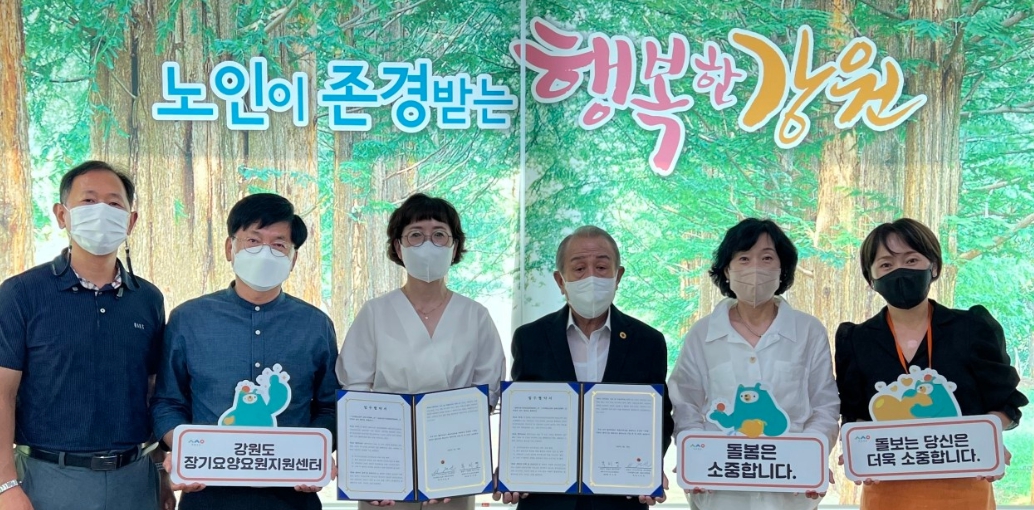 장기요양요원 인식개선 및 좋은 돌봄문화 확산을 위한 업무협약 체결「강원도 장기요양요원지원센터 - (사)대한노인회 강원도연합회」정유근 기자 / |
