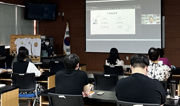 함양교육지원청(교육장 최경호)은 함양 관내 특수교육지원인력(특수교육실무원, 사회복무요원) 대상으로 장애학생의 인권보호 역량 강화 및 마음 치유의 기회를 제공하고자 8월 5일(금) 함양교육지원청 영재교육원에서 하계 특수교육지원인력 연수를 운영하였다. 올해 하계 연수에서는 ‘나는 당신의 숙제가 아니에요’ 저자 김성남 박사를 초빙하여 발달장애인의 인권 존중과 지원에 관해 깊이 있게 고민하며 이해하는 시간을 가졌다. 이후 ‘마음을 치유하는 힐링 꽃꽂이’ 활동과 ‘영화를 통한 자폐성 장애의 이해’ 강의, ‘나만의 팬 상품 만들기’ 체험활동 등 다양한 내용으로 진행하여 특수교육지원인력의 역량강화 및 치유의 시간을 가졌다.