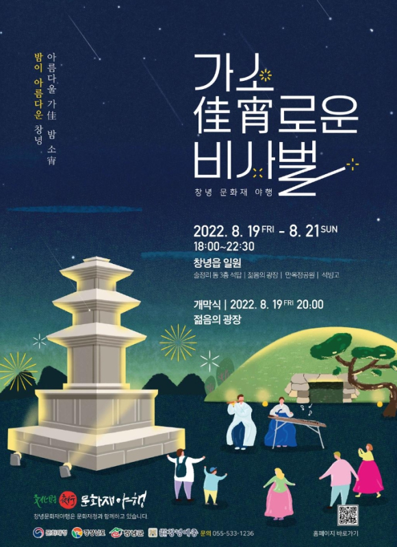 창녕군은 8월 19일부터 8월 21일까지 창녕읍 일원에서 2022 ‘가소(佳宵)로운 비사벌’ 창녕 문화재 야행을 개최한다.