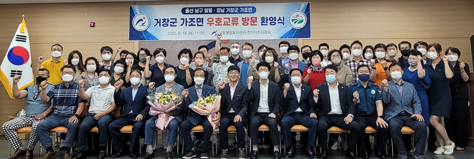거창군 가조면(면장 류현복)은 지난 18일 자매결연기관인 울산 남구 달동을 방문하여 우호 교류 행사를 가졌다. 가조면은 이번 교류 행사를 위해 김효수 주민자치회장을 비롯한 주민자치회 위원, 이재운 군의원, 류현복 면장 등 20명이 울산 남구 달동을 방문했으며, 달동에서는 조영희 주민자치위원장 및 위원, 김동칠 시의원, 최신성 남구의회 의원, 김주현 달동장, 이일남 통장회장 등 40명이 참석했다.