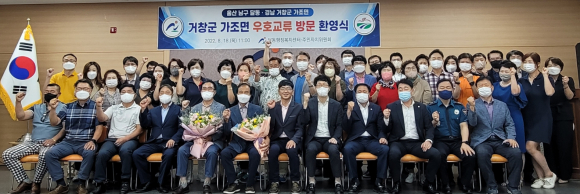 | 이날 환영행사와 간담회는 달동 행정복지센터에서 개최되었으며, 상호 지역에 대한 이해 증진과 가조면의 친환경 농산물 직거래 등 상호교류 활성화 방안에 대해 허심탄회하게 이야기를 나누는 자리가 되었다. 또한, 우리나라 두 번째 국가 정원으로 지정된 태화강국가정원과 낡은 수산물 냉동창고 건물을 리모델링하여 복합문화공간으로 조성한 장생포 문화창고를 견학하며 우수사례 정보 교환의 시간을 가졌다.
