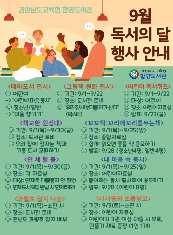 독서의 달 9월, 책과 함께 하는 가을맞이- 함양도서관, 9월 독서의 달 맞아 다양한 행사 운영 -최정현 기자 / |