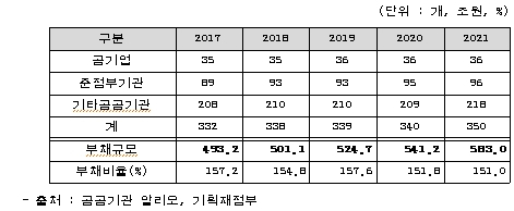 - 출처 : 공공기관 알리오, 기획재정부