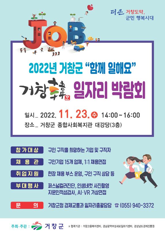 거창군, ‘함께 일해요! 2022년 거창韓 일자리 박람회’ 개최현장 채용상담 부스와 다양한 부대 행사 진행김도형 기자 / |