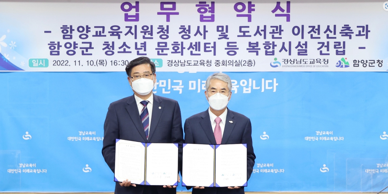 “경남교육청-함양군 업무협약” - 함양교육지원청사 및 함양도서관 이전신축으로 함양교육 인프라 구축 기대 -최정현 기자 / |