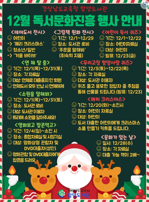 함양도서관과 2022년 마무리 함께해요!- 함양도서관, 12월 독서문화진흥행사 운영 -최정현 기자 / |