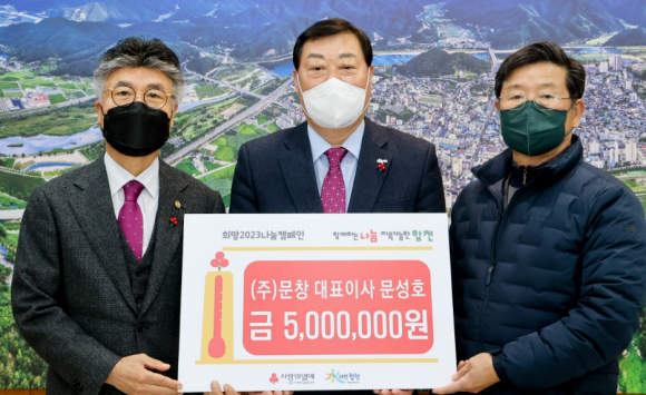 ㈜문창 대표이사 문성호, 합천군에 이웃돕기 성금 500만원 기탁이광훈 기자 / |