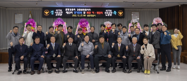 함양경찰서(서장 남규희)에서는 ’22. 12. 27. 17:00 경찰서 3층 대회의실에서 경찰발전협의회 정기총회 및 회장 이·취임식 행사를 개최 하였다. 이날 1부 정기총회에서는 감사보고, 2022년도 사업결산보고 및 2023년 사업계획 예산안 승인건, 임원선출, 기타토의 등에 대하여 논의 및 2부 회장 이·취임식에서는 이임사. 감사패 및 꽃다발 전달, 위촉장 수여, 취임사, 축사, 기념촬영 순으로 진행 하였다.