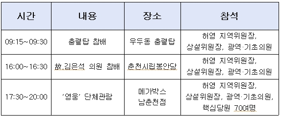 더불어민주당 춘천·철원·화천·양구(갑) 지역위원회 계묘년 신년행사 개최-안중근 의사 일대기를 담은 영화‘영웅’핵심당원들과 관람하며, 역사의식 고취하는 시간 가져- -오전, 호국영령의 넋을 위로하는 충렬탑 참배를 시작으로 오후에는 故.김은석 시의원이 영면한 시립봉안당 찾아 생전 고인의 뜻 기려- 정유근 기자 / |