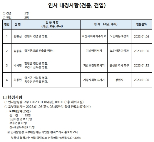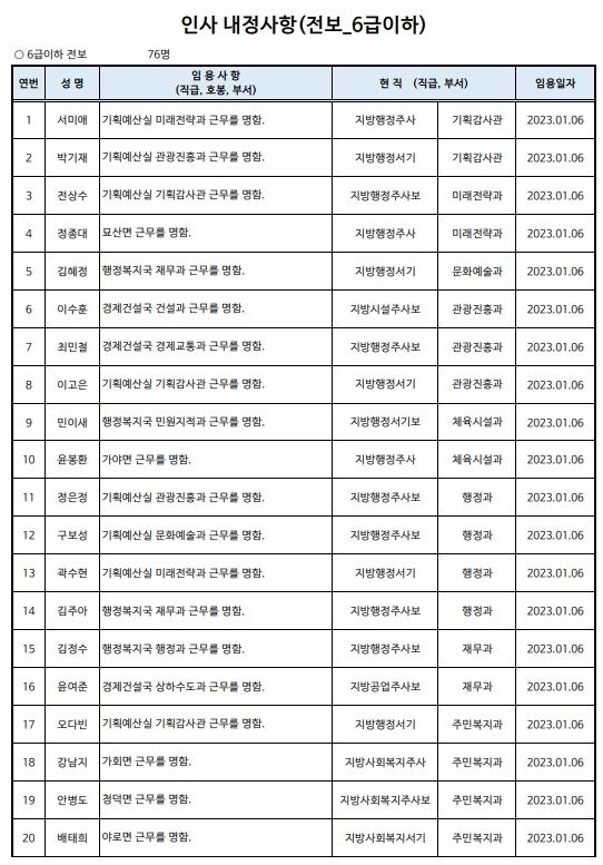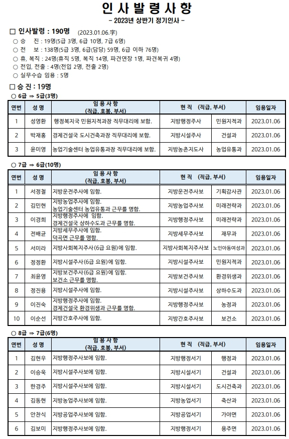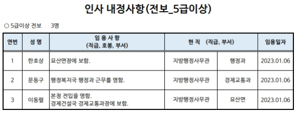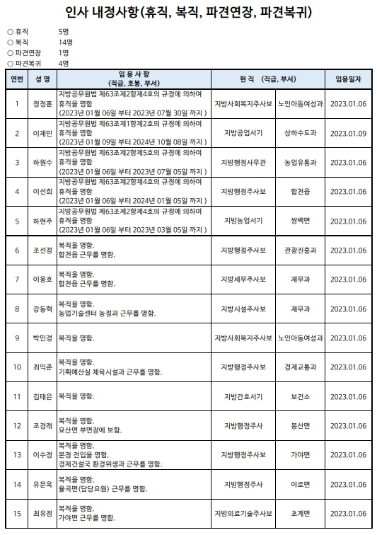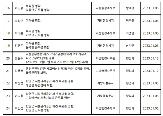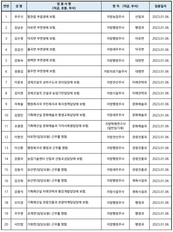 합천군 상반기 정기인사발령이광훈 기자 /