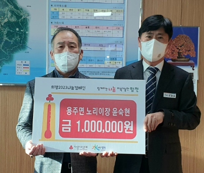 용주면 노리마을 윤숙현 이장, 이웃돕기 성금 100만원 기탁이광훈 기자 / |