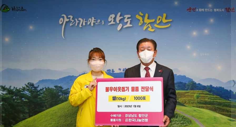 (사)한국나눔연맹, 함안군 이웃돕기 쌀(10kg) 1000포 기탁김철상 기자 / |