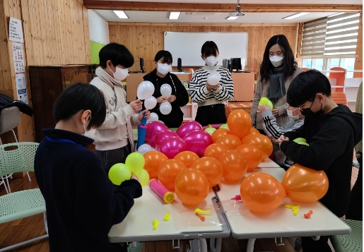 먼저 풍선아트 체험활동은 전교생을 대상으로 풍선으로 다양한 꽃모양을 만들어 보았고 5일(목)에 있을 졸업식장을 꾸몄다.