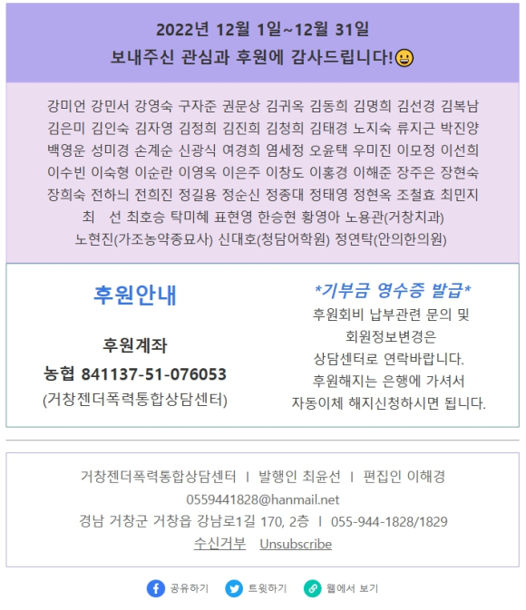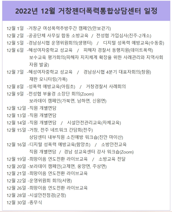거창젠더폭력통합상담센터 2022년 12월 소식지김도형 기자 /