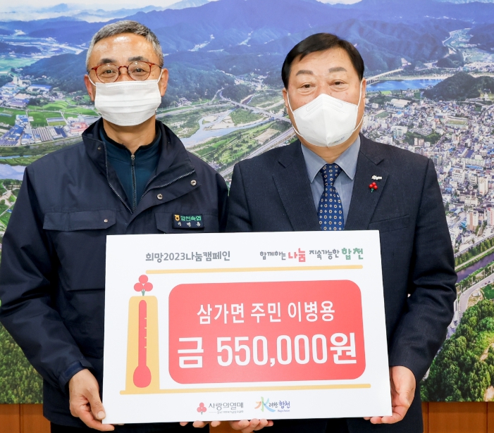 삼가면 주민 이병용, 합천군에 이웃돕기 성금 55만원 기탁이광훈 기자 / |