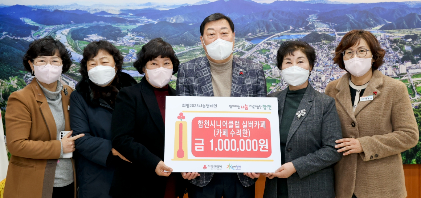 합천시니어클럽 카페수려한, 합천군에 이웃돕기 성금 100만원 기탁이광훈 기자 / |